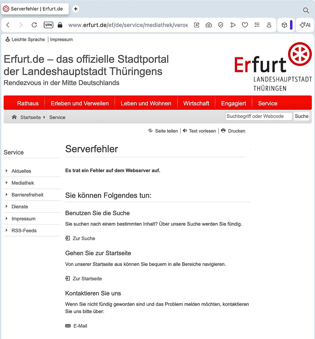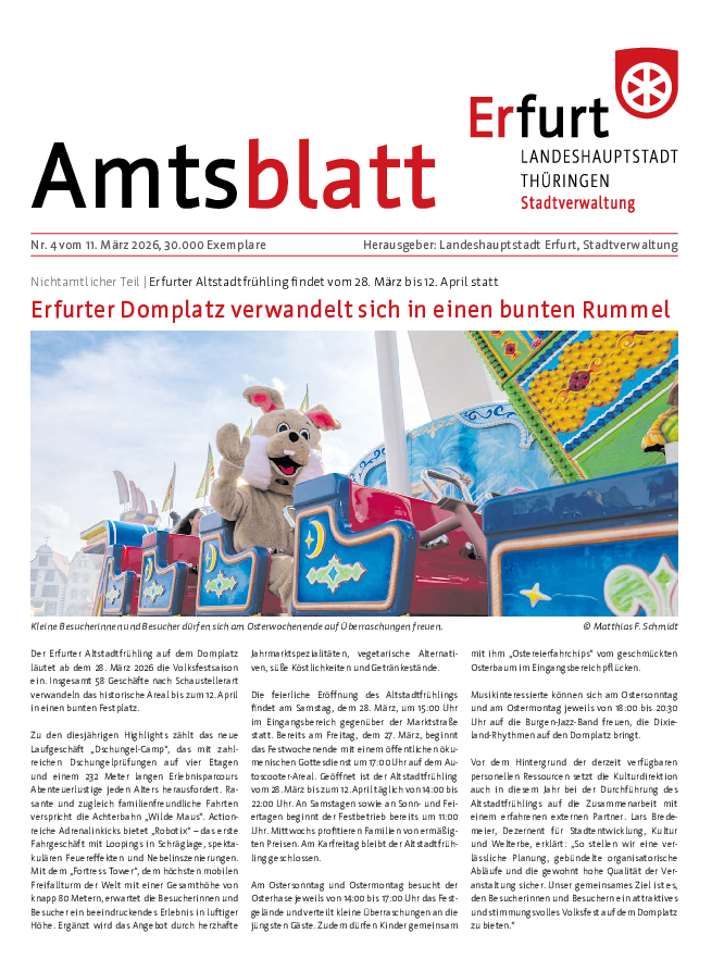 Da der Server der Stadt Erfurt derzeit nicht funktioniert und Informationen zum Altstadtfrühling im Amtsblatt bereitgestellt werden, möchte ich Ihnen dieses hier übergangsweise zur Verfügung stellen, um die Stadt Erfurt ein weiteres Mal zu unterstützen.
