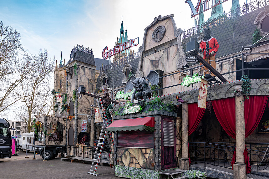 Die Firma Eberhard aus Hamburg ist mit der “Wilden Maus” zum Erfurter Altstadtfrühling auf dem Domplatz.