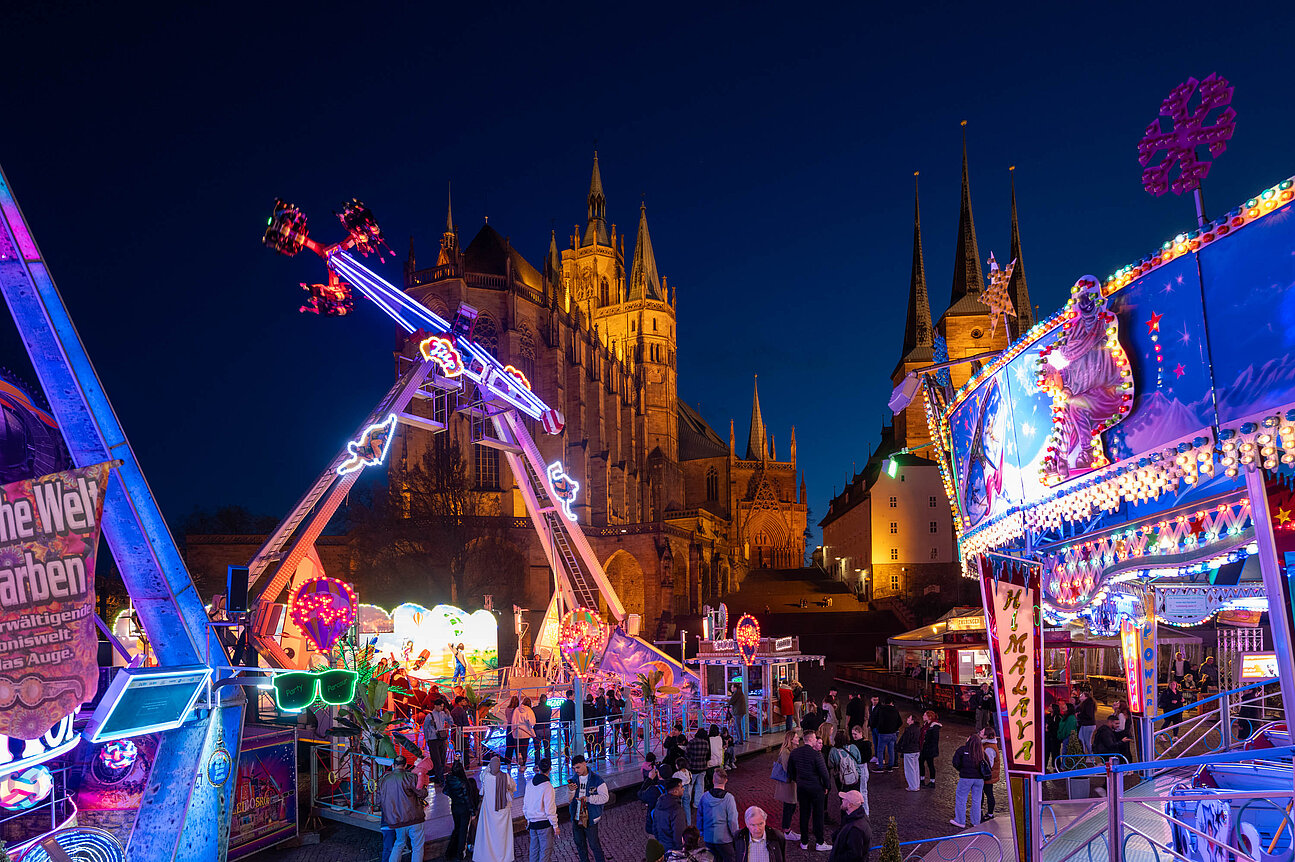 Der Erfurter Altstadtfrühling findet jedes Jahr auf dem Domplatz, unterhalb des St. Marien Domes und der Severikirche statt. Neben zahlreichen Fahrgeschäften für unsere kleinen und großen Besucher, könnten Sie außerdem kulinarische Besonderheiten genießen.
